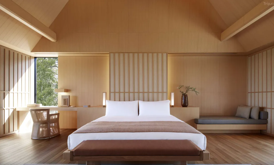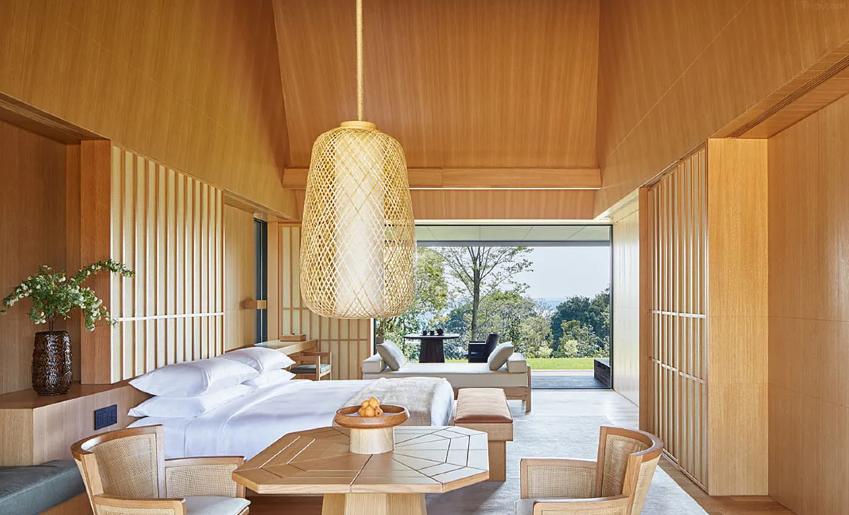 모든 스위트와 빌라에 프라이빗 온천이 들어가고, 빌라는 366㎡ 이상이라 프라이버시와 공간감이 아주 강하다. 그래서 아만네무 Amanemu는 일본식 고요함 쪽 럭셔리의 대표 럭셔리 리조트다.