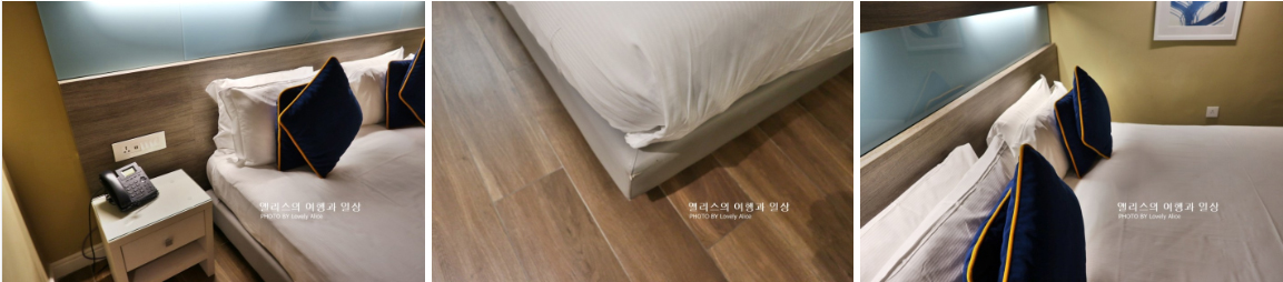 전반적으로 푹신하면서 안정감있고 이불도 깨끗하게 세팅되어서 무척 마음에 들었다. 여기에 바닥은 마룻바닥. 이것도 마음에 들었고