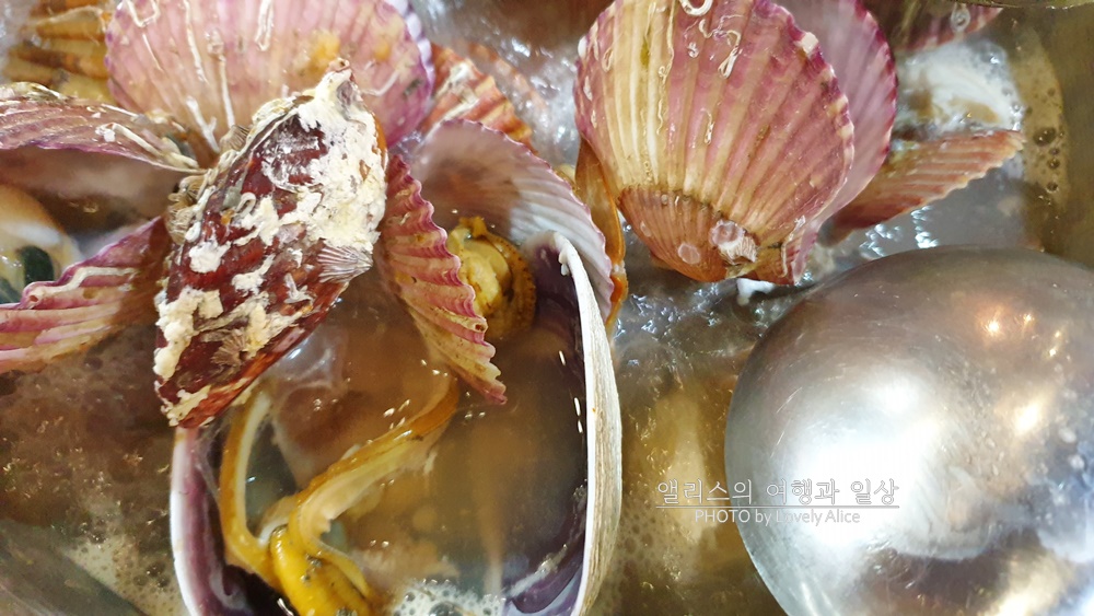 팔팔팔 끓다보면 가리비 조개들이 톡톡 터지는 것이 상당히 먹음직스러웠다. 보통 가장 작은 사이즈를 주문하면 조개의 양이 적거나 특히 가리비 조개는 그 갯수가 적어지는 것이 보통인데, 이곳은 제일 작은 사이즈에도 가리비가 듬뿍. 정말 혜자롭다. 식당 사장님도 어찌나 친절하시던지 정말 기분 좋게 식사를 할 수 있는 곳이다.
