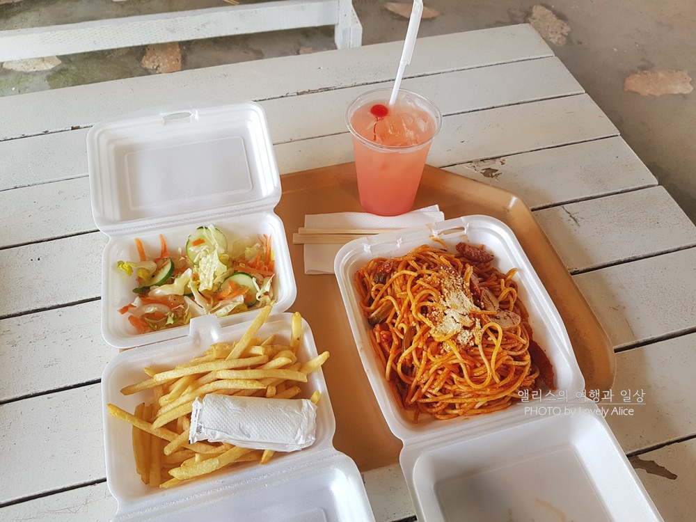 일단 배가 고프니 식당에 가서 토마토 미트소스 스파게티를 메인으로 주문. 양은 사진에서 보기와 달리 괘 많았다. 덕분에 위대한 나에게 잘 어울리는 양이랄까. 맛이 아주 끝내주는 건 아니고 배고프니까 먹을 만하달까!