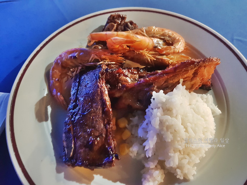 저녁에는 그랜드 브리오 리조트에서 바베큐 뷔페를 한다. 성인 기준 1인 39달러. 덕분에 푸짐하고 든든하게 단백질을 섭취할 수 있었다. 직원분들 모두 친절하셔서 내가 그릇을 들고 가기만 하면 굽는 와중에도 조금만 기다리면 된다고 안내해주시고 한개라도 더 그릇에 고기덩이를 올려주시려고 해주셨다. 아 정말 그랜드 브리오 리조트 사이판에서 만난 직원분들 모두 정말 친절했다. 체크인 할 때도 새벽에 피곤에 쩔은 나를(퇴근하자마자 바로 공항으로 달려가서 사이판에 도착) 농담으로 풀어주며 체크인을 도와주고, 식당에서 나를 보고 웃어주고. 여기 직원들 모두 친절한 것 같다.