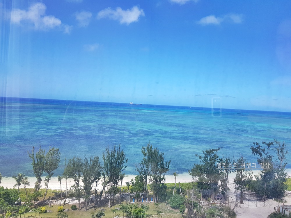 아침에 눈을 뜨고 창가를 바라보면 보이는 그랜드 브리오 리조트의 백사장.