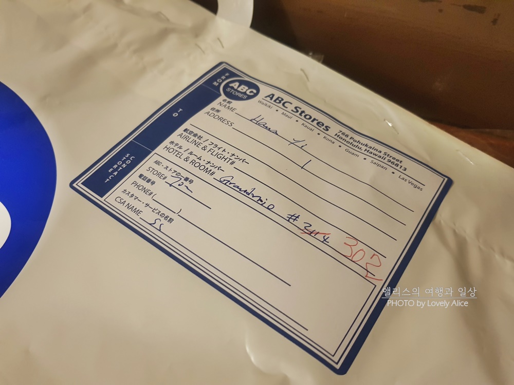 ABC 스토어에서 구매한 물품이 객실에 도착했다.