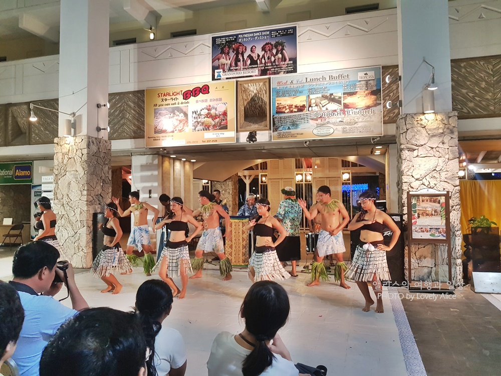 바베큐 뷔페도중에 로비에서 진행하는 사이판 전통공연.