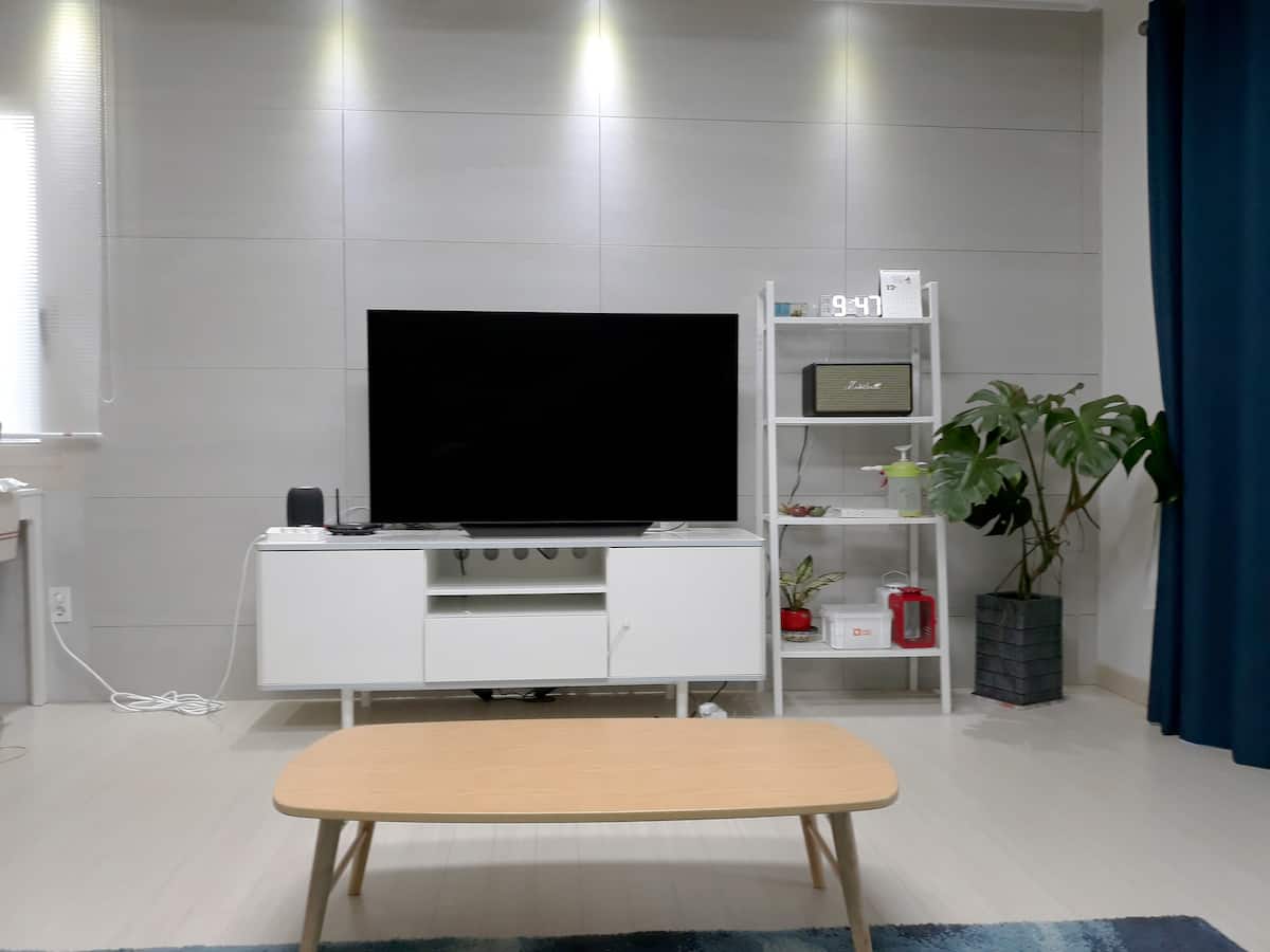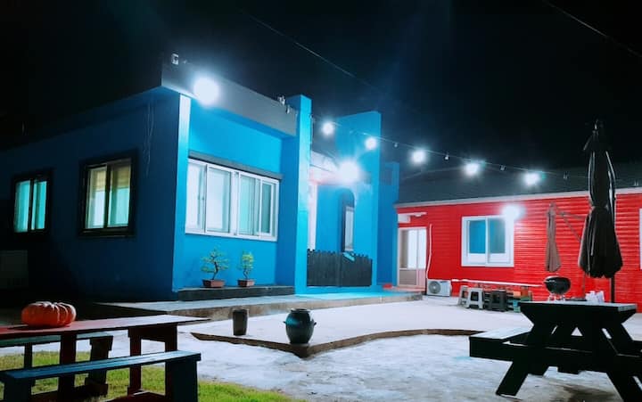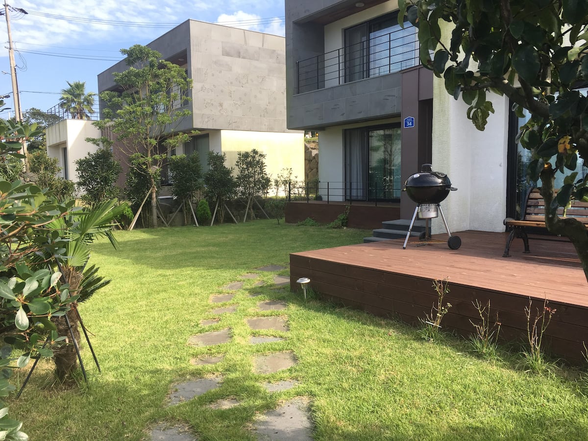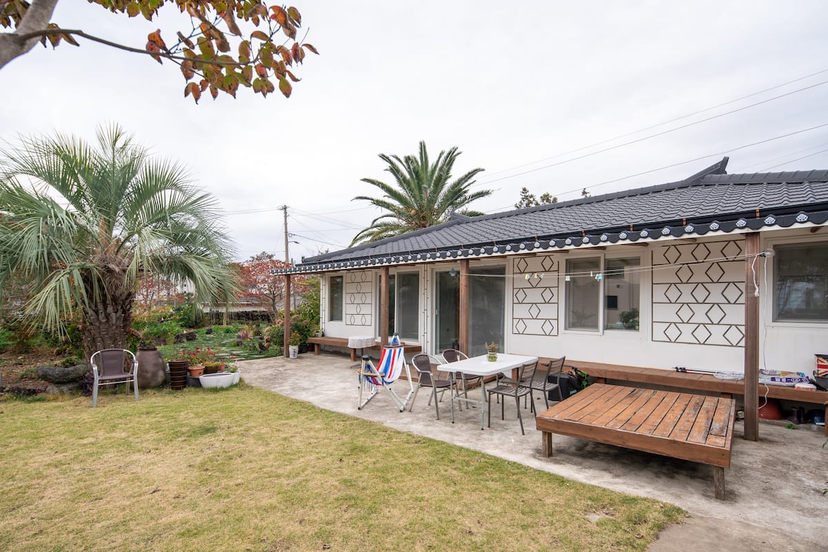제주에서 쉽게볼 수 있는 민박집이다. 하지만 사진에서 보이는 것과 달리 마당이 그리 좁지 않으며 작은 수영장도 있다. 제주공항에 가까워 여행 시작이나 마무리 할 때 이용하고 이동하기도 편리하다. 숯과 그릴만 가져오면 바베큐도 가능하다. 인근에 슈퍼와 베이커리등 필요한 물품을 조달하기에도 편리하고 차량과 가이드가 필요하다면 슈퍼호스트가 연결해주기도 한다고.