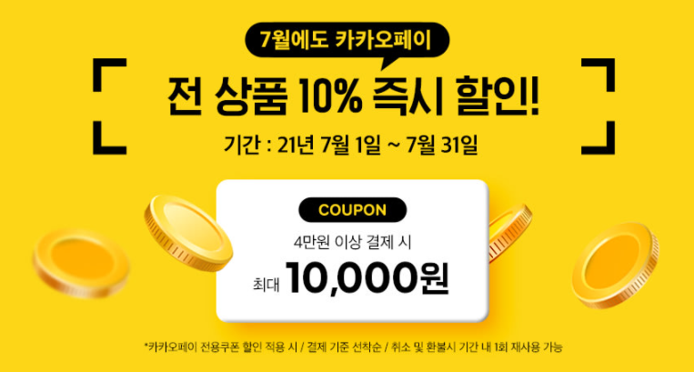 ・사용방법: 카카오페이 결제시, 전 상품 4만원 이상 결제시 최대 1만원 할인
