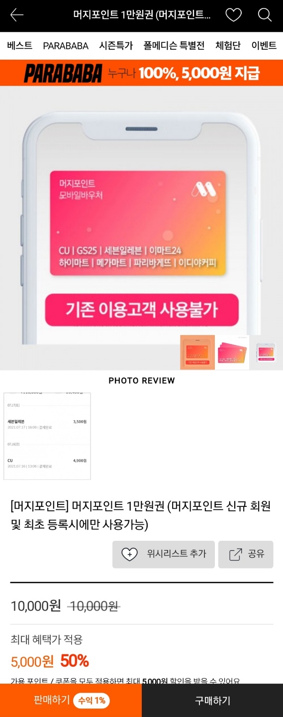 (p.s. 나는 평소에 머지머니를 할인구매해서 마트나 식당에서 결제한다.)
