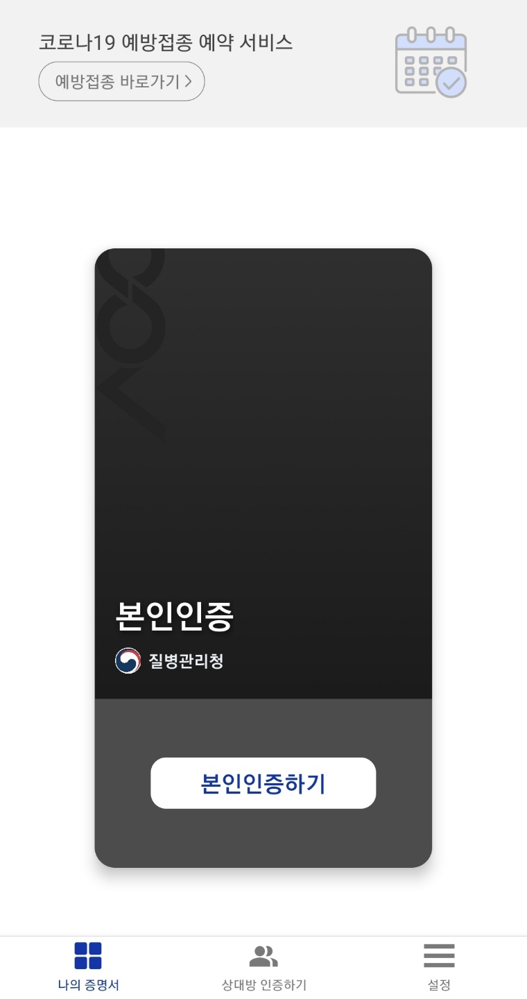 본인 인증이 완료되면 백신 접종 증명서 발급이 가능하다.