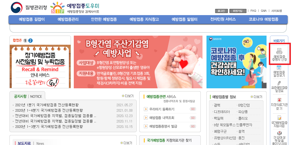 ▶ 예방접종 도우미 공식 웹사이트 https://nip.kdca.go.kr/irgd/index.html