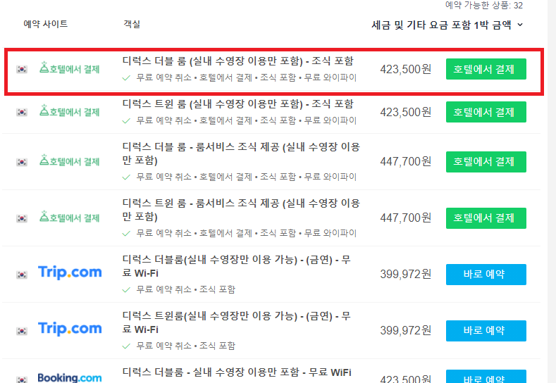 그저께 가격 확인이랑, 어제 가격 확인이랑, 그리고 지금 글 쓰는 시점에서 가격 확인을 해봐도 최저가 가격이 빠른 속도로 소진되고 있다. 지금이라도 이 글을 본다면 가능한 빨리 예약잡길 추천한다.