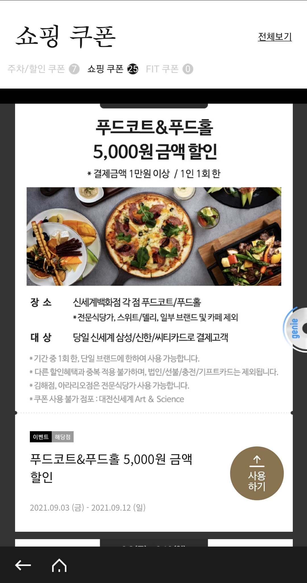 그래도 매번 부담없이 음료를 마실 수 있다는 점이 좋다. 이 외에도 1만원이상 구매시 5천원 할인되는 푸드코트 & 푸드홀 할인쿠폰도 있으니 아래 링크를 참고하여 미리미리 받아두자.