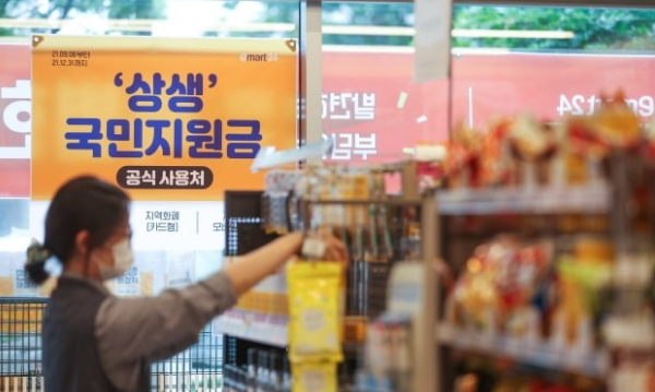 : 9월 13일부터 이마트24에서 국민지원금으로 결제 후 모바일 앱 통합바코드를 스캔하면 목표금액 25만원이 설정되고, 한 달 이내 사용 누적금액 25만원을 달성하는 고객을 대상으로 추첨을 통해 250만원(1명), 50만원(5명), 1만원(100명) 모바일 상품권(이마트24)을 선물증정