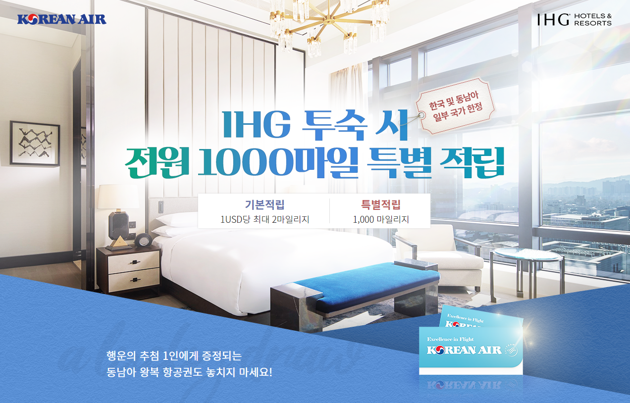 IHG 투숙시 전원 대한항공 1천마일리지 특별적립