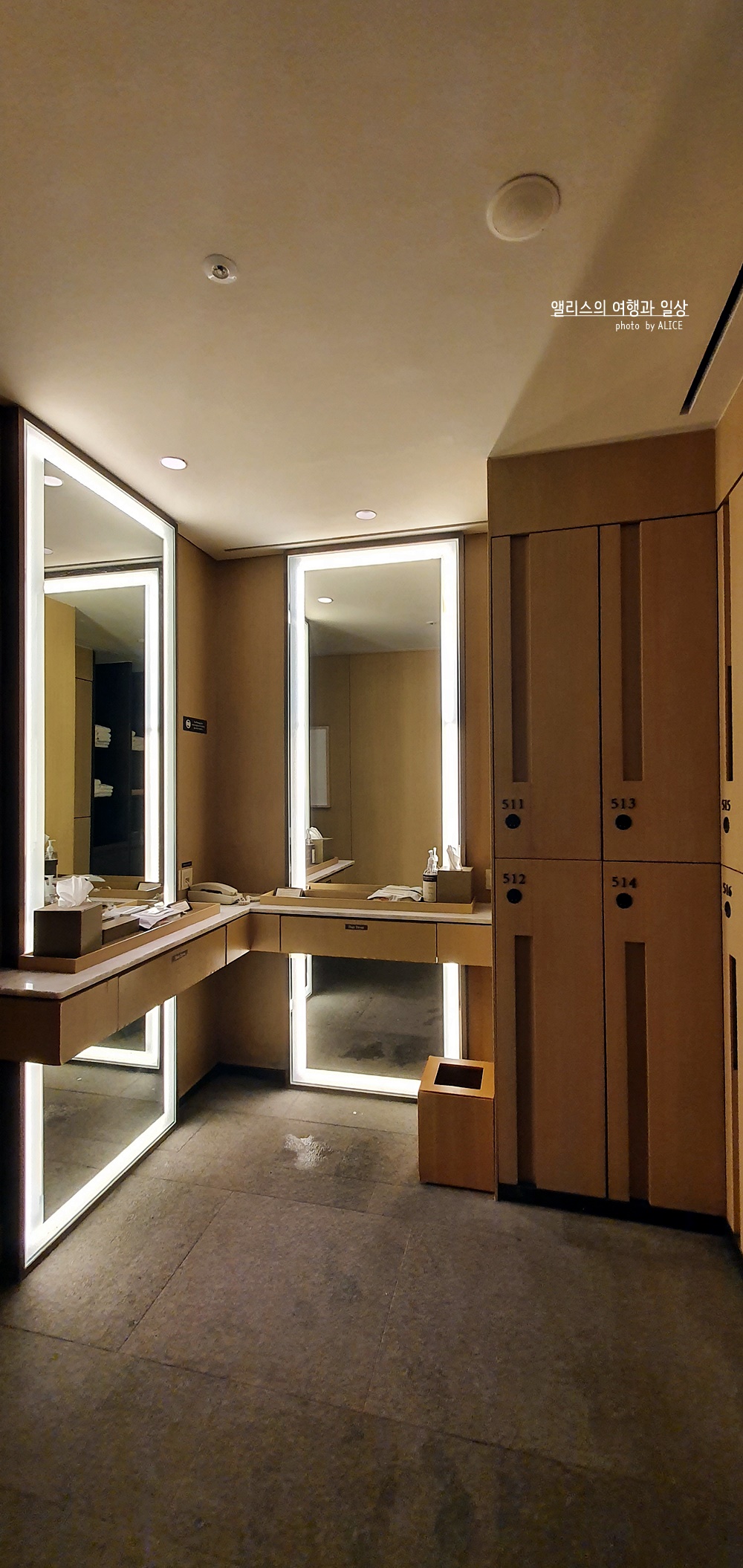 사실 요즘 팬데믹으로 인해서 옷만 여기서 갈아입고 간단한 샤워는 객실로 돌아가는 게 마음이 편하긴 하나, 그래서인지 이곳을 이용하는 사람들의 숫자는 생각보다 거의 없는 편이었다. (내가 입장한 시간이 사람 없을 때라서 그럴지도 모르겠음.)