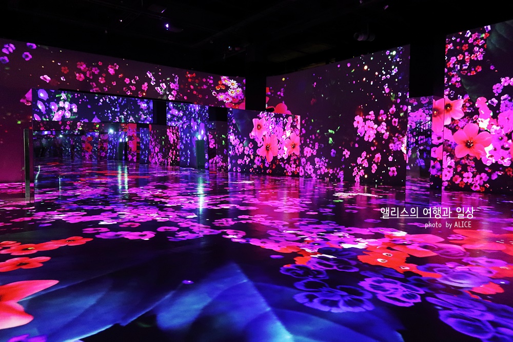 빛과 어둠의 경계에서 만들어지는 색들의 신비로움을 느낄 수 있는 플라워 가든은 미디어와 자연의 만남이라는 주제를 가장 잘 나타내는 첫번째 관이다. 이곳은 온 화면이 화려한 꽃으로 가득차 있어서 감성적인 전시를 관람할 수 있다. 자연은 가장 화려한 색상을 표현하고 인간은 그것을 표현하는 것이 쉽지 않은데 1관 플라워가든은 아주 화려한 색상을 다양한 형식으로 표현하고 있어, 자연으로부터 오는 색의 아름다움을 대리로 느낄 수 있다.