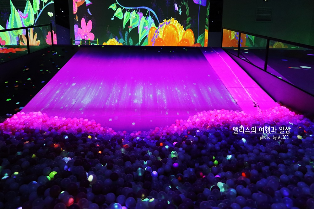 이 거대한 빛으로 둘러싼 미끄럼틀은 어른들에게도 인기였다. 이곳에 들어오는 모든 어른들은 가지런히 신발을 벗고 미끄럼틀에 몸을 맡겼다. 물론 어린시절보다 키도 마음도 몸무게도 모두 커버렸지만 숨어있던 동심은 어딘가에 있기 마련. 별거 아닌 것 같은데 빛에 둘러쌓인 채 미끄럼틀을 타고 내려가는 것은 순간 흥미로운 일이었고, 공이 적은 곳에 내리찍은 내 엉덩이는 조금 아프기도 했다. ^^;; 그래도 재미있는 체험!