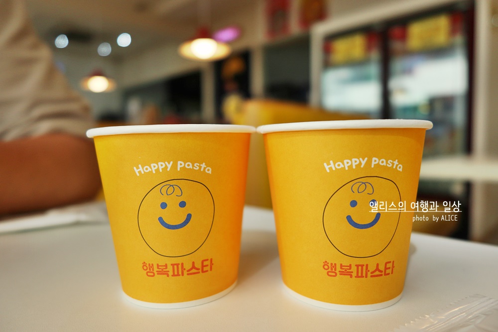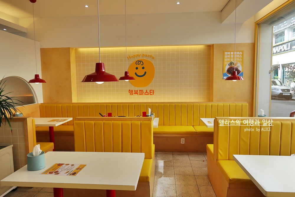 찾는 것은 어렵지 않았다. 골목에 들어가자마자 보이는 이 산뜻한 노란색 디자인. 여기에 해피 파스타라는 행복한 캐릭터 덕분에 행복파스타 식당을 굉장히 쉽게 찾을 수 있었다.