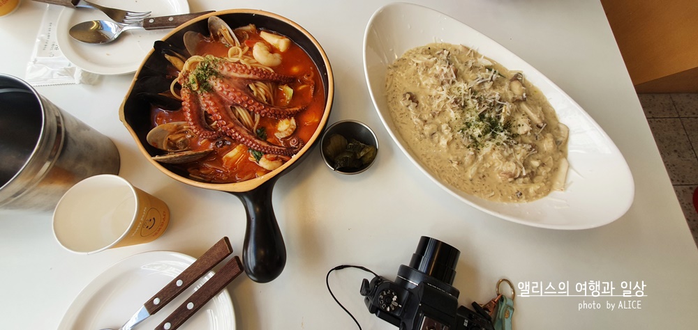 특히 뚝배기에 담긴 얼큰한 돌문어 파스타는 파스타빼쉐다. 덕분에 얼큰한 것을 좋아하는 한국인 입맛에 잘 맞는데, 냄새부터 맛있었다. 더군다나 돌문어가 올라간 비주얼에 사진을 안 찍을 수가 없었다.