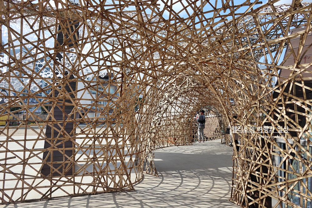 아주 재미있는 작품이었다. 언뜻보면 문어인가 싶다가도 문어는 아닌데, 분명한 것은 전반적인 형체가 뭔가 해양 생물같긴 했다. 작가는 "복수를 꿈꾸는 기이한 생명체"로 표현했다. 또 그렇게 보였다. 그래서 재미있었다. 그 기이한, 그리고 인간에게 복수를 꿈꾸는 이 생명체가 품고 있는 것은 광활한 아름다운 바다임을 보면 또 놀랍다. 이 대나무 사이를 들어가서 그 끝에 다다르면 망망대해 탁 트인 일광바다를 볼 수 있다. 푸른 바다는 하얗게 부서지는데 그 아름다움은 본 사람들만 알 것이다. 이 기괴한 생명체는 복수를 꿈꾸면서도 아름다운 바다를 품고 있었다.