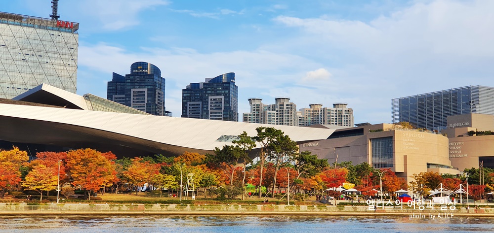 뉴욕은 커녕 미국 그 어디에도 가 본적은 없지만, 그래서 늘 사진으로만 보던 뉴욕의 모습이지만, 해운대 리버크루즈에 탑승해서 바라본 해운대 센텀시티는 그 멋진 사진의 배경인 뉴욕에 뒤지지 않았다. 유유자적 흐르는 수영강변에 화려한 빌딩, 그 앞에 드리워진 진한 색을 자랑하는 단풍잎은 매우 아름다웠다.