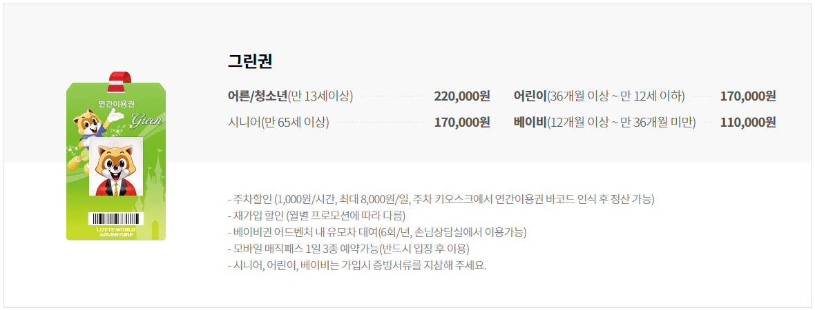 ■ 롯데월드 연간회원권 (그린권) 특징