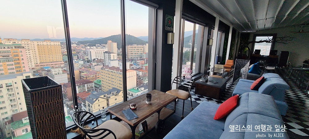 루프탑바에서 보는 제주시의 야경도 좋았고 낮에 보이는 제주시의 모습과 크고작은 제주만의 오름에서 독특한 뷰도 좋았다. 가격도 최저가로 1박에 6만원대에 예약이 가능하기 때문에 제주공항에서 가깝고 가성비있게 깔끔한 객실에서 머물 수 있다는 장점이 인상적이었다.