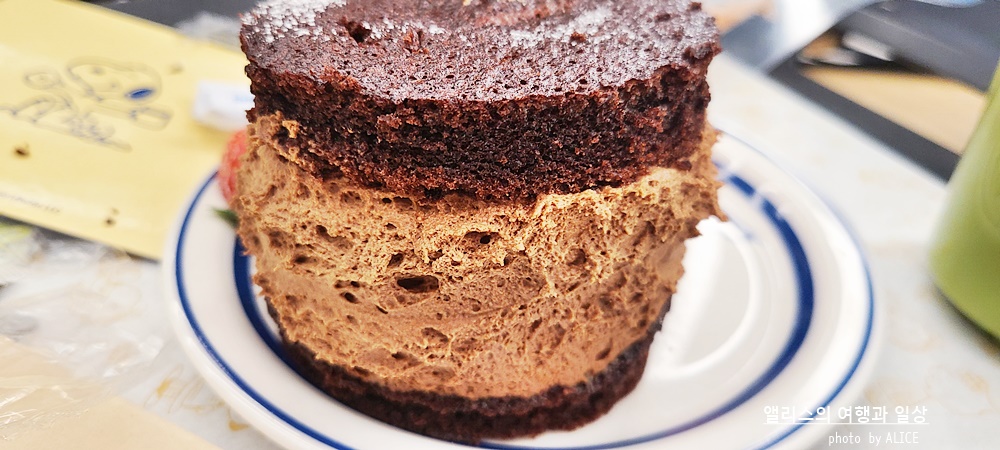 다만 초코무스 케이크가 애매했는데, 초코의 본질은 충실한 무스 케이크였지만 이에 맛으로 보자면 데코레이션은 딸기가 별로였다. 진한 초코무스와 딸기가 어울리지 않고 겉돈달까. 보기에는 빨간색의 과일이 초코무스와 잘 어울렸지만 맛은 추천하고 싶지 않았다. 뭐 이건 내 취향이니 참고만 하시길.