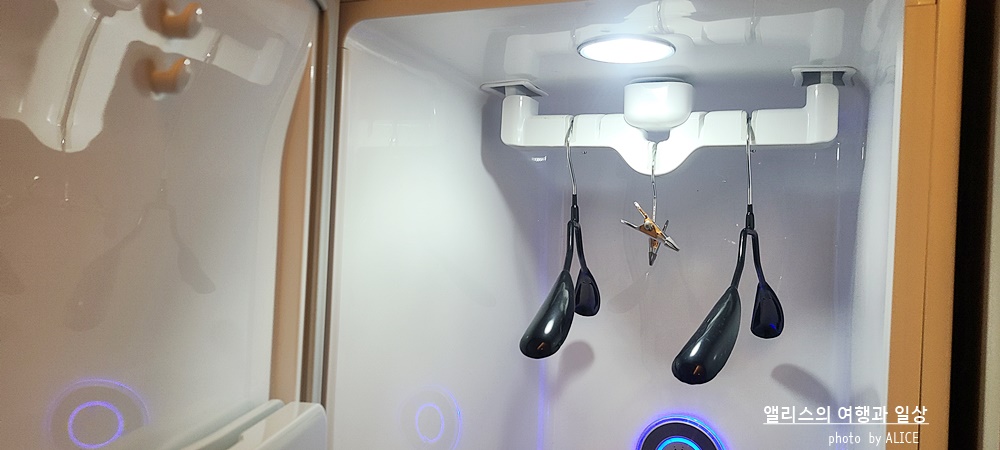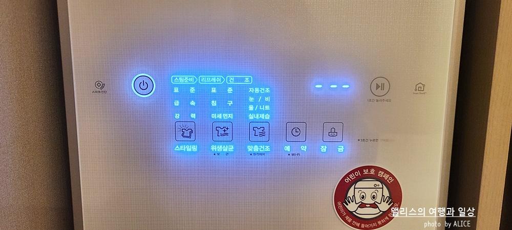 옷장은 별도로 없지만, 스타일러스가 있다. 보다시피 옷장이라고 할 만한 별도의 공간이라기보다는 시스템 형식의 옷장으로 구분해두었다. 옷걸이 바로 밑에 주전자가 있어서 이걸 제외해야 편하게 옷장으로서 사용 가능하다.