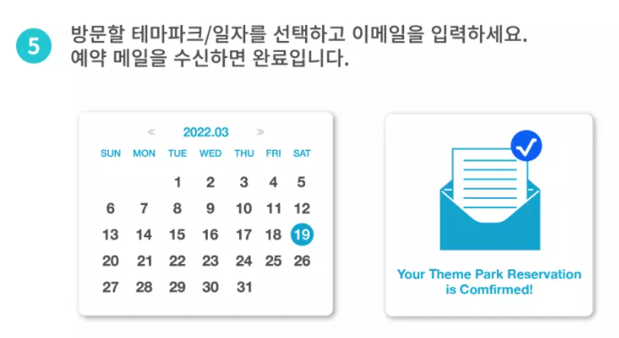 ③ 예약 화면에서 일자와 파크를 선택하기. (미예약 방문객은 입장이 거부된다.)