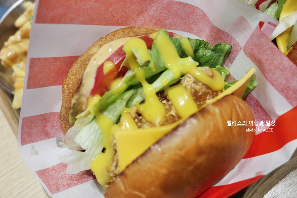 감튀는 언제 먹어도 맛있다. 두께가 두껍진 않은 흔하게 볼 수 있는 평범한 감자튀김이지만, 취향에 따라 치즈를 더하거나 혹은 어니언크림을 더해도 된다. 나는 기본 감튀랑 치즈 더한 감튀로 선택. 맛이 없을 수 없는 감튀!
