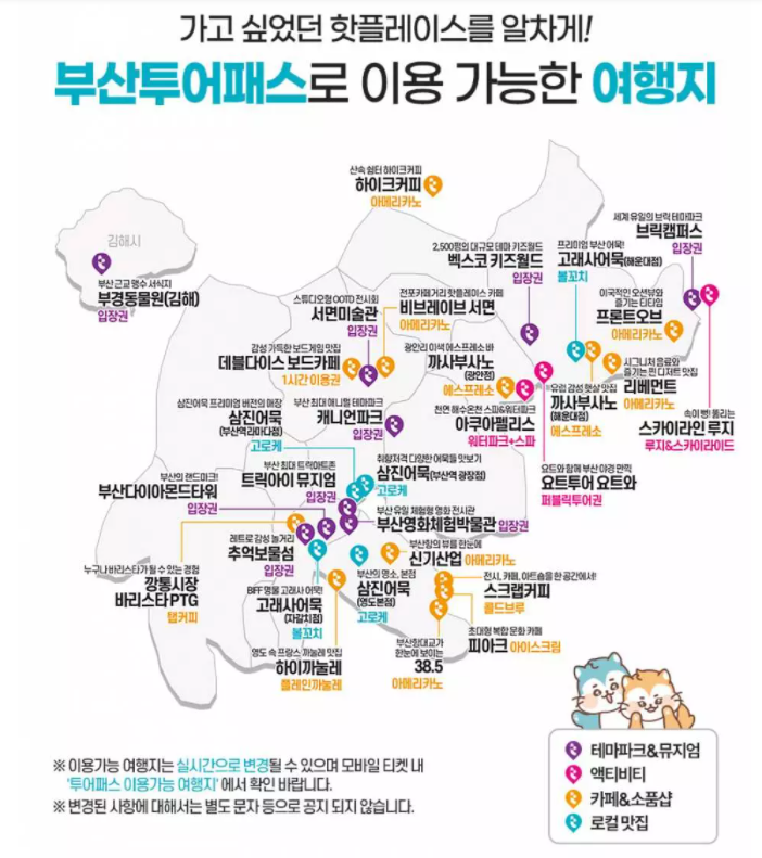 패스 한 장으로 24시간 또는 48시간 동안 제한없이 부산 곳곳을 여행할 수 있는 프리패스권이다. 카페, 관광지, 뮤지엄, 체험 등 30여 곳의 즐길거리가 포함되어있다.