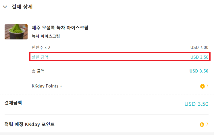 이 녹차 아이스크림을 반값에 구매할 수 있는 kkday × 하나카드 이벤트다.