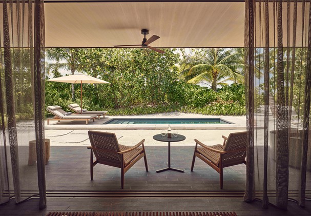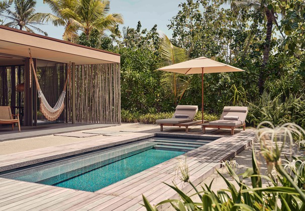 · 리조트에는 해변 앞 인피니티풀, 요가와 명상을 즐길 수 있는 수상 파빌리온, 피트니스 센터, 테니스장, 라이브러리가 완비