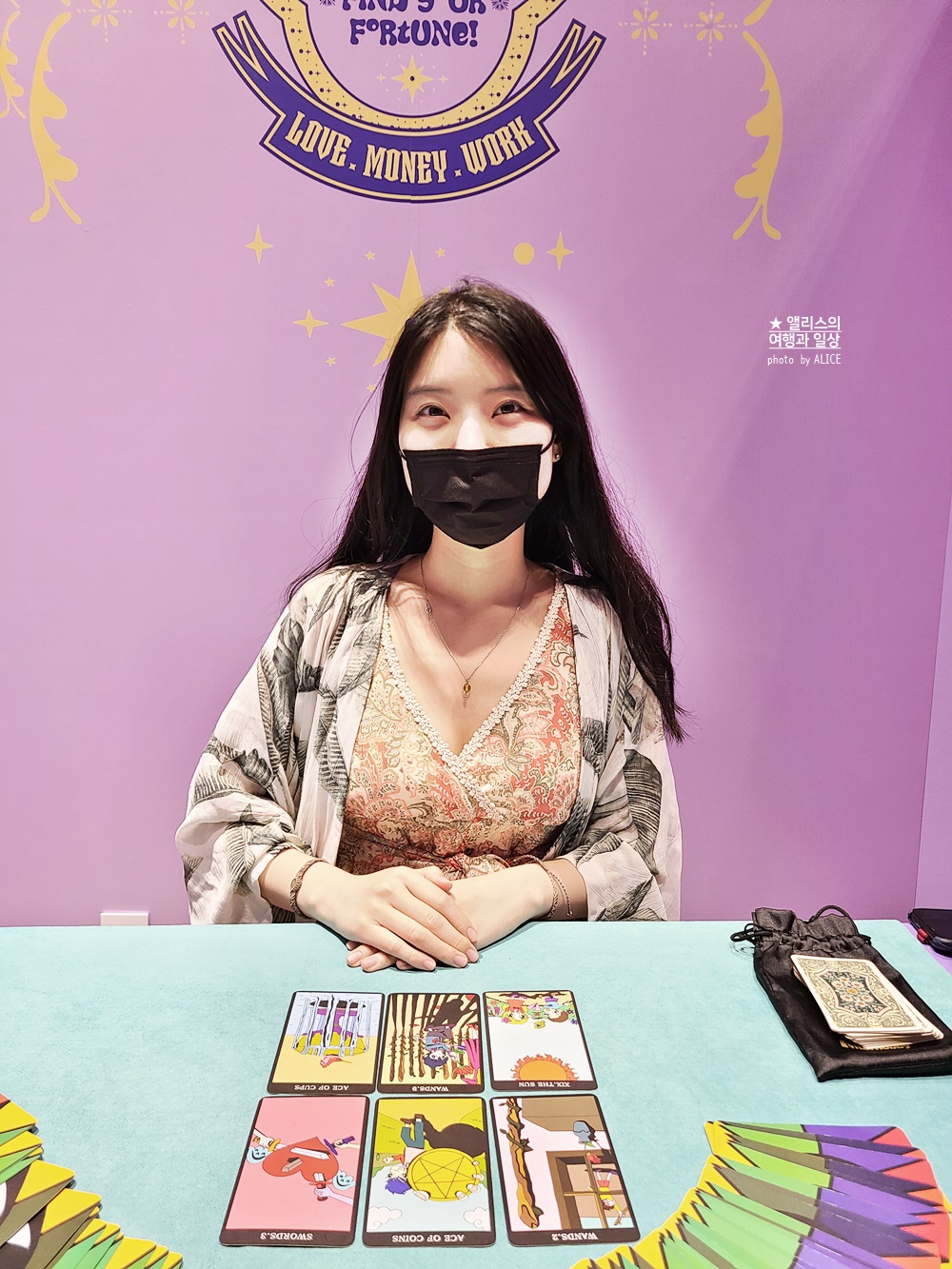 상담시간은 10~15분, 연애운, 금전운, 이직과 취업 등 본인이 궁금했던 분야 한 가지만 물어볼 수 있다. 나 역시 포춘 텔러 이벤트 참여. 즐겁게 타로를 볼 수 있었다.