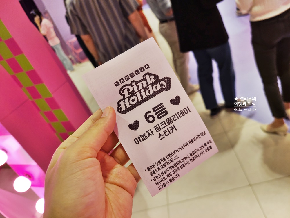 나는 참여하지 않았지만 누구나 포토존이 많은 야놀자 팝업스토어에서 찍은 사진을 직접 무료로 인화할 수 있다. 디지털로 남기는 사진과 또 다르게 실물로 남기는 사진의 매력은 남다르다. 핑크 홀리데이 맵을 확인 해보면 4번 코너에 "사진인화 키오스크"를 찾을 수 있다. 이곳에서 예쁘게 남긴 사진을 인화해보자.