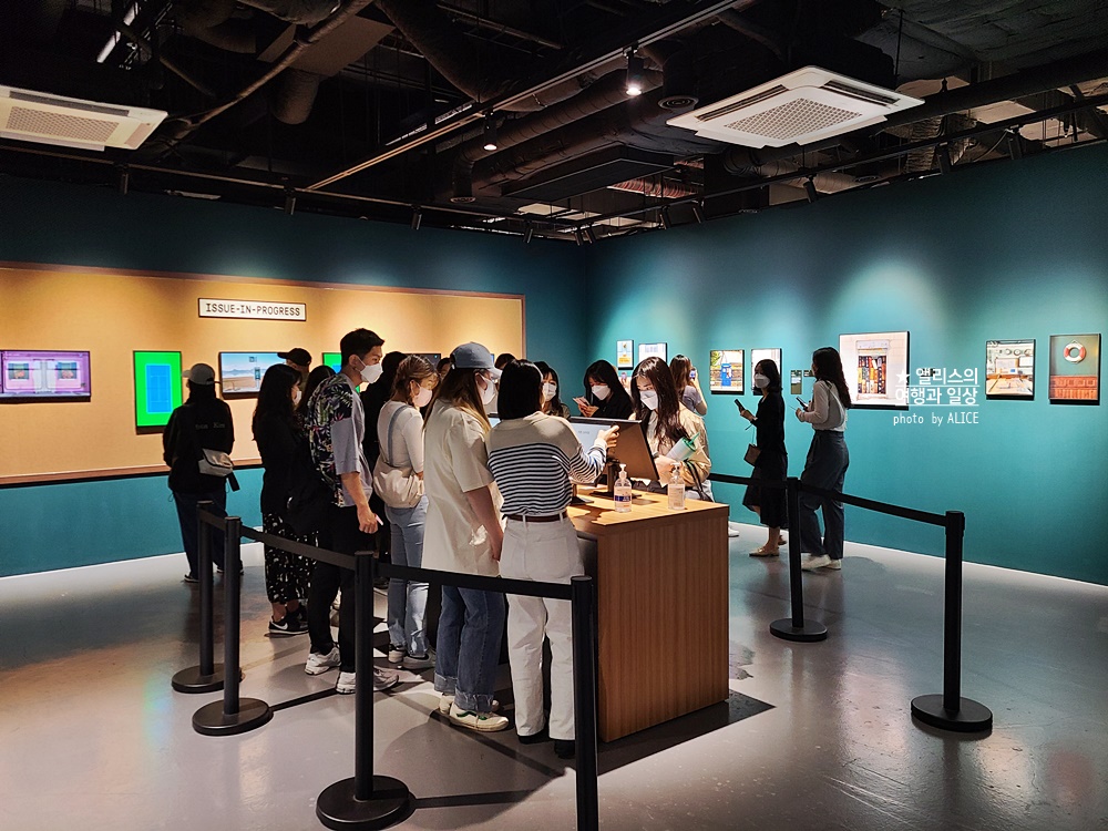 평일 늦은 오후임에도 불구하고 사람들이 제법 많았다. 물론 주말보다는 덜하겠지만. 내부에 너무 많은 사람이 머문다면 이 멋진 전시를 훌륭하게 감상하기 어려운 것은 사실이다. 특히 각 구역마다 느낌이 완전히 다른 '우연히 웨스 앤더슨 전시' 특성상 너무 많은 사람들이 한 번에 몰리면 그 특유의 여운을 충분히 누리기 어렵다. 그래서 가능하다면 주중에 방문하길 추천한다.