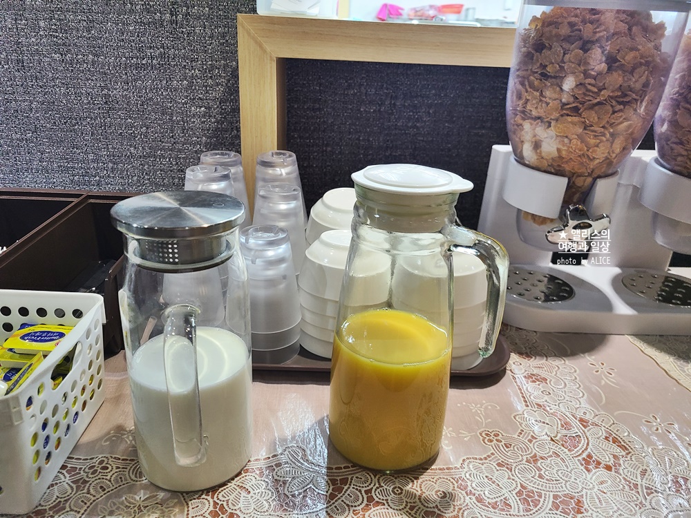 아침 조식은 누구나 1인당 7천 원. 요즘 물가 생각하면 매우 부담 없는 가격이라고 생각된다. 시리얼과 빵, 수프 그리고 추가 샐러드는 필요한 만큼 더 먹을 수 있고, (음료는 커피, 주스, 우유) 나머지는 식당 이모님이 한 번에 준비해주신다. 보다시피 과일과 채소, 탄수화물과 단백질 모두 채울 수 있는 간편하지만 든든히 먹을 수 있는 조식이라 귀찮게 밖에 나가서 아침을 해결하는 게 싫다면 지하 1층으로 내려가자.