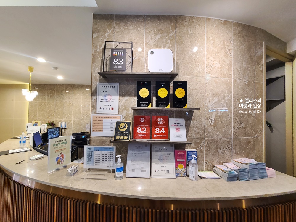 사실 아몬드 호텔 부산역은 규모 자체가 매우 큰 호텔은 아니다. 그러므로 프론트 공간이 매우 크진 않지만 직원들이 참 친절했다. 불편한 미소를 띠는 것도 아니고 필요한 것이나 요청한 게 있을 때 항상 차분한 목소리로 안정적인 안내를 도와주었고 짐을 맡길 때에도 편하게 일 보고 언제든지 찾아가시라며 안내해주었다. 가성비도 좋고, 위치도 좋고, 전 객실 욕조까지 있는데 직원이 친절하기까지 하니, 그래서 평점이 높은 호텔로 분류되는 이유가 충분하다고 본다.