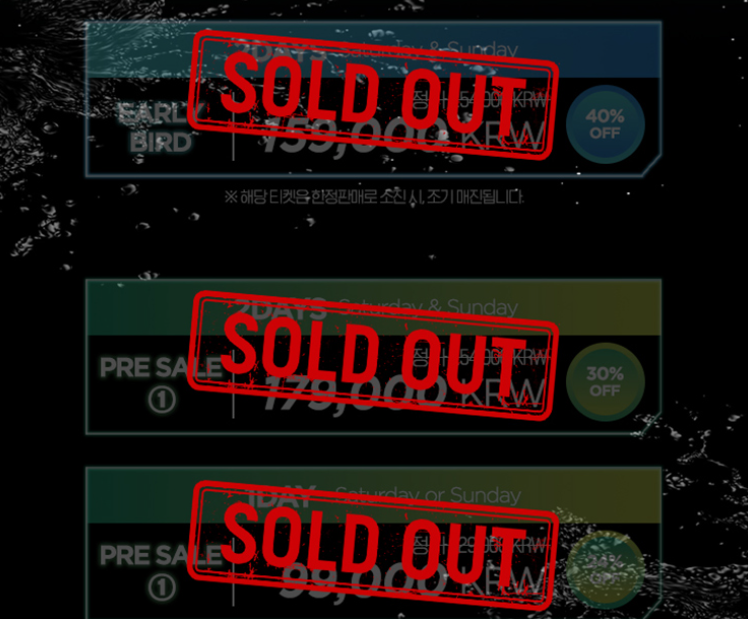 * 프리세일(얼리버드 할인가)는 모두 매진된 상태. 현재 정가 입장권은 예매 가능하다.