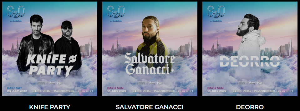 태국에서 시작해 일본, 대만, 중국을 넘어 드.디.어. 한국에서 처음으로 선보이는 S2O KOREA. 한국에도 송크란 뮤직 페스티발이 시작된다. 얼리버드 (프리세일) 티켓은 이미 매진되었을 정도로 뜨거운 열기를 확인할 수 있는 S20 코리아 송크란 뮤직 페스티벌. 과천 서울랜드 동문주차장에서 S20 코리아 송크란 뮤직 페스티벌가 시작되며 모든 공연이 끝나고 되돌아갈 셔틀버스까지 예약할 수 있어서 걱정없이 즐길 수 있는 여름 콘서트가 아닐까 싶다!