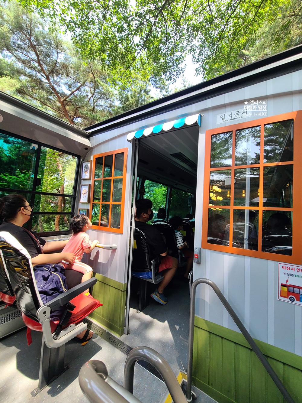 즉, 선착순으로 도착하면 원하는 좌석을 지정할 수 있다. 날씨가 좋은 날이라면 (선선하게 바람도 불고 날씨도 시원하고 햇살도 강하지 않으면서 화창하다면) 지붕이 없는 공간에 탑승하는 것이 좋다. 하지만!!! 이제부터 본격적으로 더워지는 여름을 고려한다면 무조건 지붕 있는 공간을 선택하자. (선착순) 날씨가 아주 더운 날 지붕 없는 좌석을 선택했다가 진짜 통닭구이 되는 줄 알았다. 아이들도 거의 익어가는 수준이라 진짜.. 괴로워했다.
