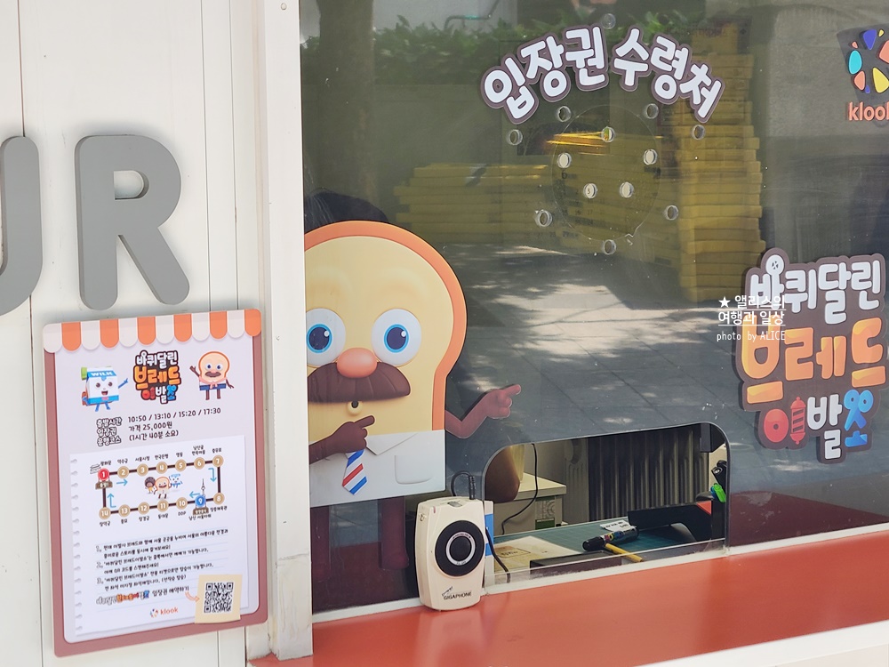 - 출발 2~30분 전부터 정류장에 차량 대기. 일찍 도착하여 내, 외부 포토존에서 브레드 이발소 캐릭터와 사진 촬영하는 것을 추천