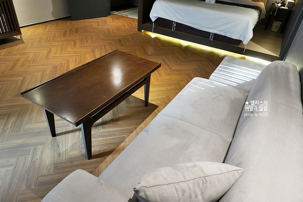 소파 앞 테이블도 넓고 컸다. 다양한 짐을 두어도 좋았고 야식으로 시켜먹은 음식과 함께 늦은 밤 파티를 열기에도 충분했다.