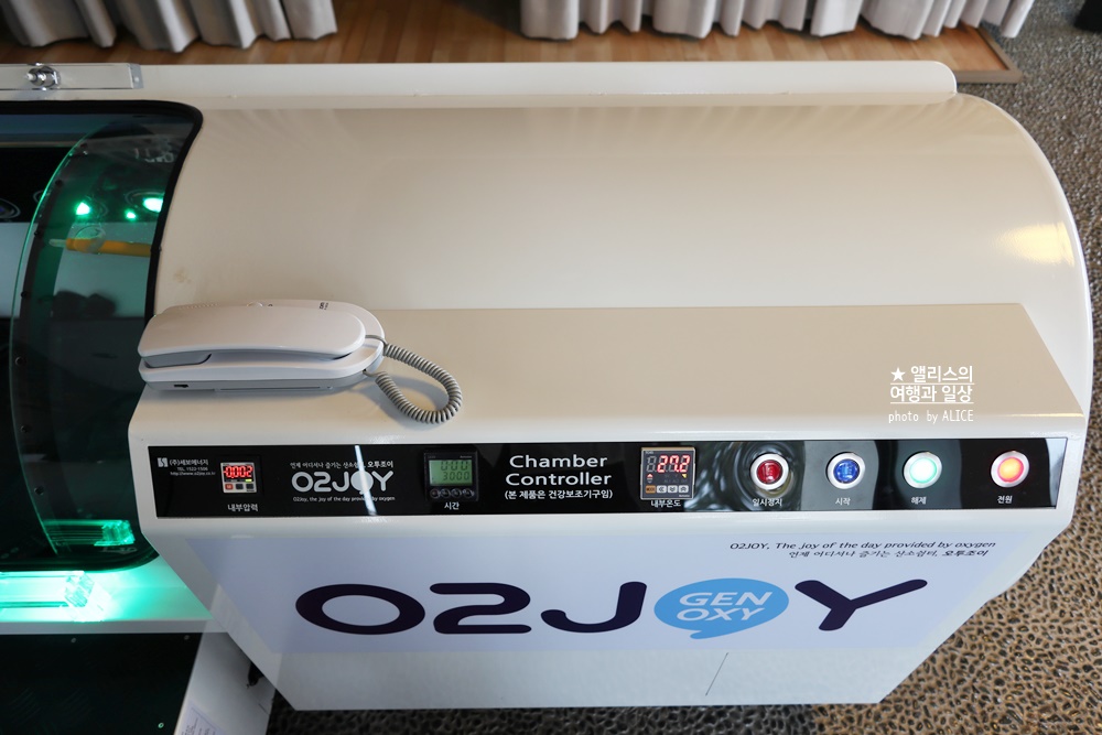 캡슐통이 완전히 닫이면 내부 인터폰으로 외부와 연락하며 만일의 사태에 대비한다. 캡슐이 완전히 닫히고 푸슉~ 하는 소리가 들리면서 기계 소리가 들리는데 사실 이 안에 있는 30분동안 나에게 특이사항은 없었다. 그냥 귀 압력 몇번 조절해주면 끝. 그리고 나는 기절했다. 산소캡슐을 처음 이용하는 거라 신기해서 가능하면 잠을 자지 않고 30분을 오롯이 느껴보려 했으나, 전날 잠을 매우 부족하게 잘만큼 바빴던 터라 그냥 캡슐안에서 어느샌가 기억을 잃고 아주 꿀잠을.... 잘 ~~ 잤다.