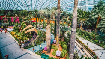 마리나 베이의 물가에 있는 세계에서 가장 큰 기둥 없는 온실로 싱가포르 대표 랜드마크다. 대표 랜드마크이자 싱가포르를 방문하는 여행객이라면 누구나 들르는 엄청난 규모의 인공 식물원이다. 그렇다 보니 자연스레 입장권일 구매해야 한다고 생각하는데 가든스 바이 더 베이는 입장은 모두 무료다. 플라워 돔과 클라우드 포레스트 냉각 온실, 160가지의 종과 32,000개가 넘는 식물들이 있으며 실내에서 가장 큰 폭포와 35m 높이의 클라우드 마운틴에 입장하는 것이 아니라면 말이다.