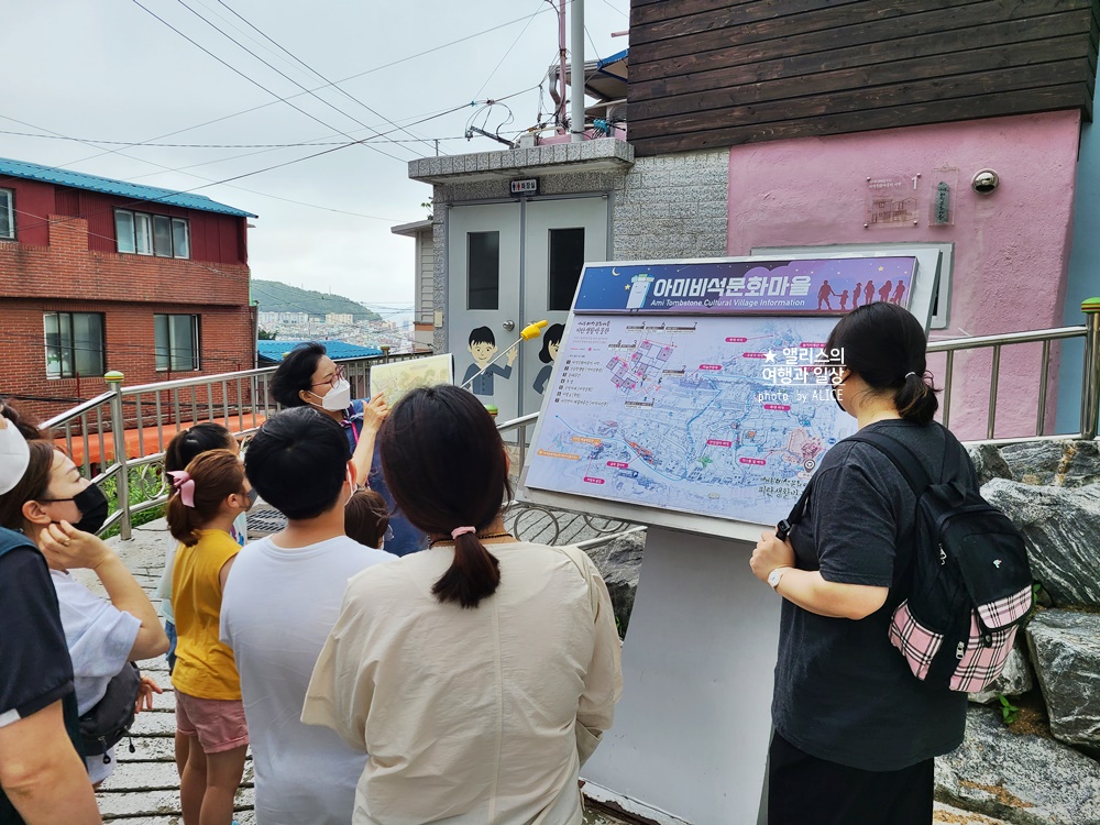 아미동 비석문화마을 이동하는 동안 피란열차와 피란민 정착기와 부산이 피란 마을로서 어떻게 이어져왔는지에 대한 다양한 이야기를 가이드로부터 들을 수 있다. 아미동 비석문화마을은갈 곳 없던 당시 피란민들이 일본인들의 공동묘지에 정착하면서 형성된 마을이다. 한국 근현대사의 아픔의 역사와 이주민들의 힘들 없던 삶의 역사를 간직하고 있는 마을로서 지금도 그 흔적이 여실히 남아있다. (알쓸신잡에도 나왔던 장소이기도!)
