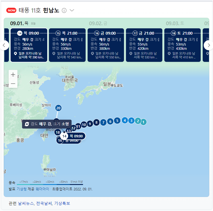 제11호 태풍 ‘힌남노(HINNAMNOR)’ 북상