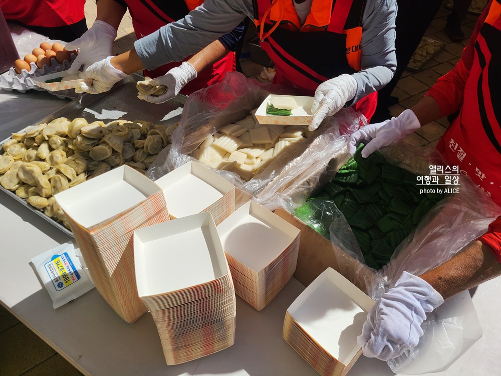 수안보 온천 추제에 참여하면서 가장 즐거운 포인트는 바로 먹거리다. 이 축제에 와서 1만원 식권 쿠폰도 받은 것도 좋았지만 매일 이렇게 무료 음식을 나눠주니 온천도 즐기고 입도 즐거운 행사라서 재미났다.