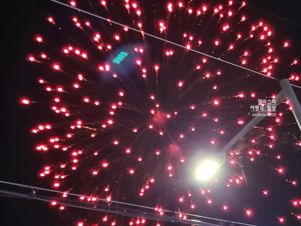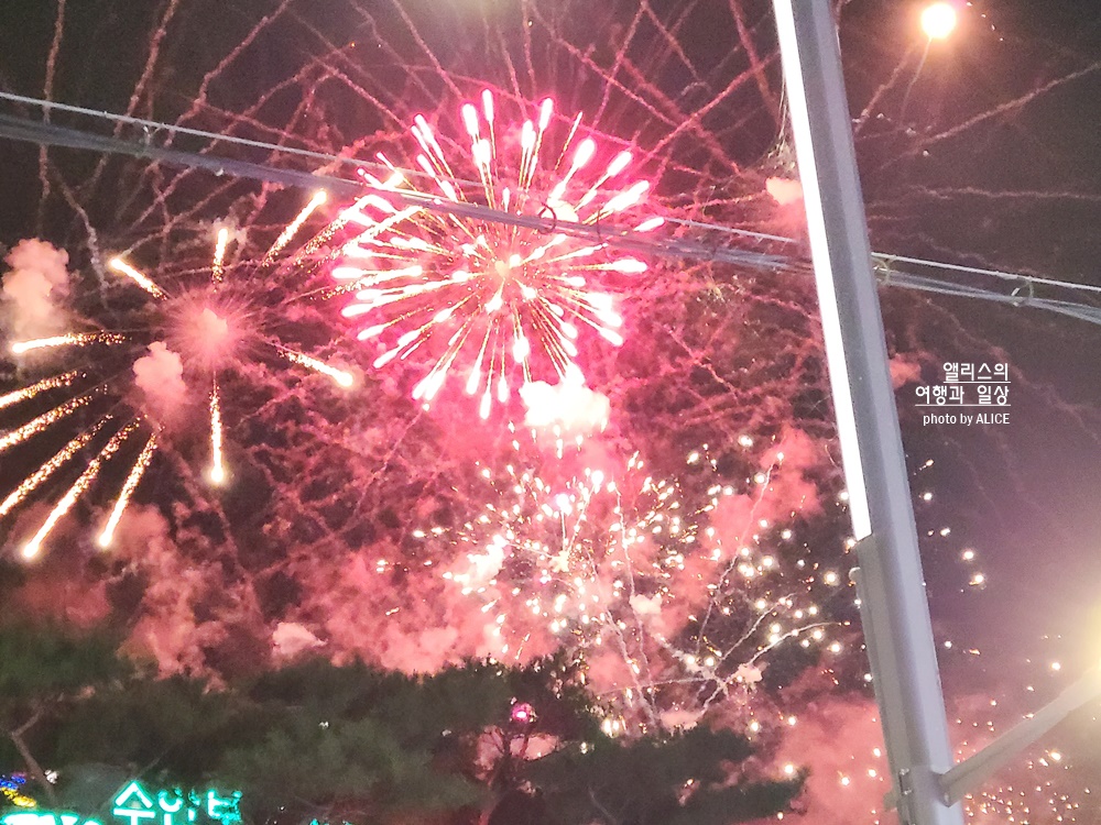 잠깐 폭죽 좀 터지나보다 했는데 그게 아니었다. 꽤나 오랫동안 폭죽이 터져서 까만 밤하늘에 수를 놓았다. 태권도 시범단 공연을 보고 너무 춥고 배고파서 (아직 저녁을 못 먹었음) 근처 식당에 능이버섯 해장국 먹으려고 들어갔다가 폭죽 터지길래 다시 나와서 폭죽을 구경했다. 생각보다 규모도 컸고 화려했고 긴 시간이었다. 덕분에 배고픔도 잠시 잊음~~
