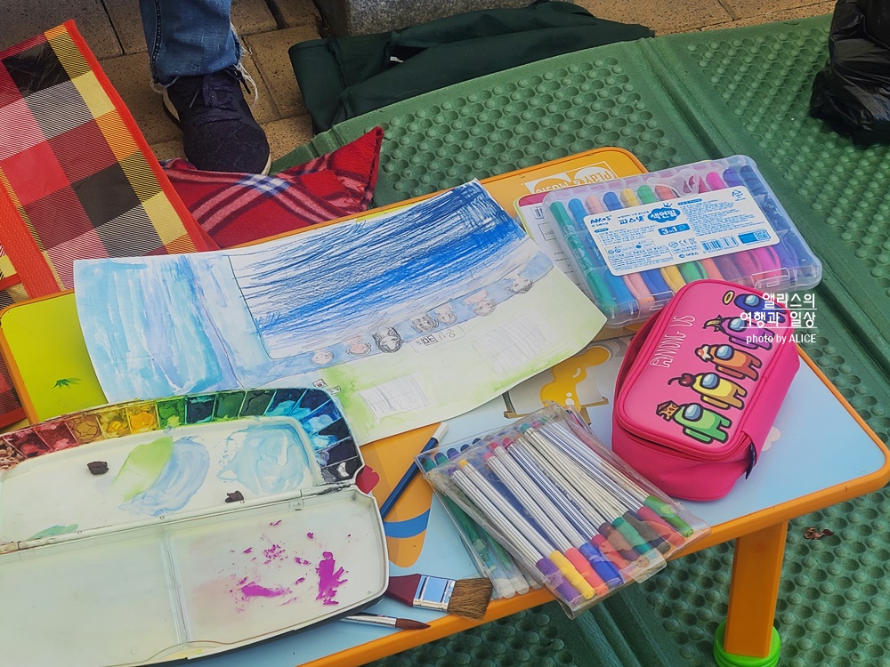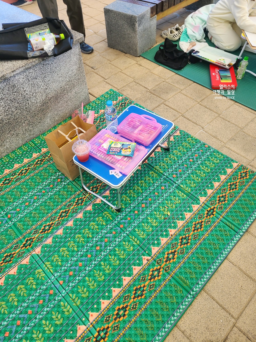 충주역에서도 1시간 정도 버스타고 들어와야하는 수안보 마을이라 (그만큼 공기 아주 좋음) 가족단위의 여행객이 많지 않을 거라 생각했는데 내 생각은 오산이었다. 가족단위의 여행객들이 기분좋은 나들이를 하는 분위기로 여기저기 자리잡아 아이들과 함께 그림도 그리고 수안보 특산물 간식도 사먹는 모습을 볼 수 있었다.